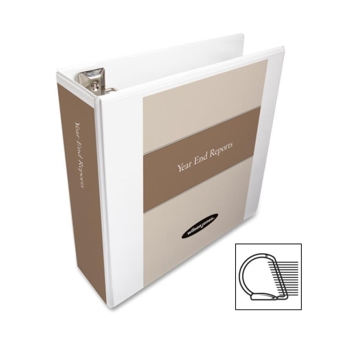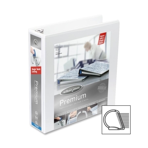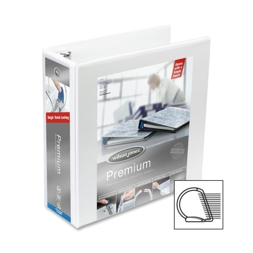 "Acco/Wilson Jones Binder, View, D-Ring, 11""x8-1/2"", 5"" Capacity, WhiteHeavy-duty binder features a single-touch locking D-ring lets you open and close the rings with a single touch, making it easy to add or change contents. D-ring design holds up to 40 percent more paper than the same size round ring. The CleanView material resists ink and toner transfer so printed papers won't stick or mark binders."