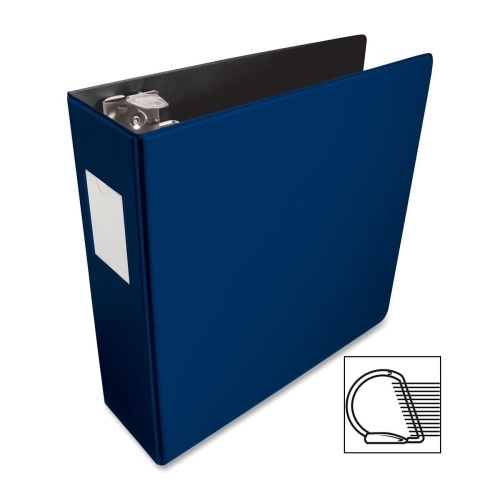 "Business Source D-Ring Binder w/Label Holder, Hvy-Dty, 4"", BlueSlanted D-ring binder is designed for maximum sheet capacity. Rings are mounted on the back cover for lay-flat visibility and long-lasting durability. No-gap D-Rings stay tightly closed...