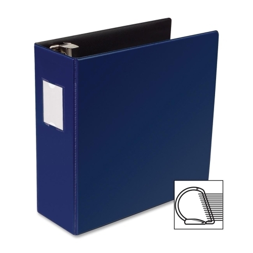 "Acco/Wilson Jones D-Ring Label Holder Binder, 4"" Capacity, 11""x8-1/2"", Dk BlueBinder features two interior pockets and a Locking No-Gap D-Ring mechanism that locks rings closed and keeps them aligned so sheets will not tear, fall out or hang up on...
