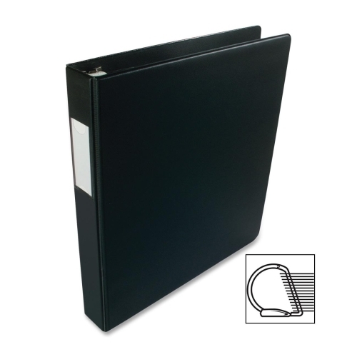 "Business Source D-Ring Binder w/Label Holder, Hvy-Dty, 1"", BlackSlanted D-ring binder is designed for maximum sheet capacity. Rings are mounted on the back cover for lay-flat visibility and long-lasting durability. No-gap D-Rings stay tightly closed...